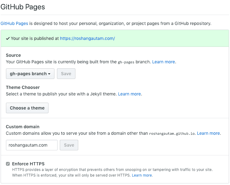 We will use github pages to host our static site. If you own a personal domain, you can configure github pages to use your custom domain at no cost. Isn’t that wonderful.